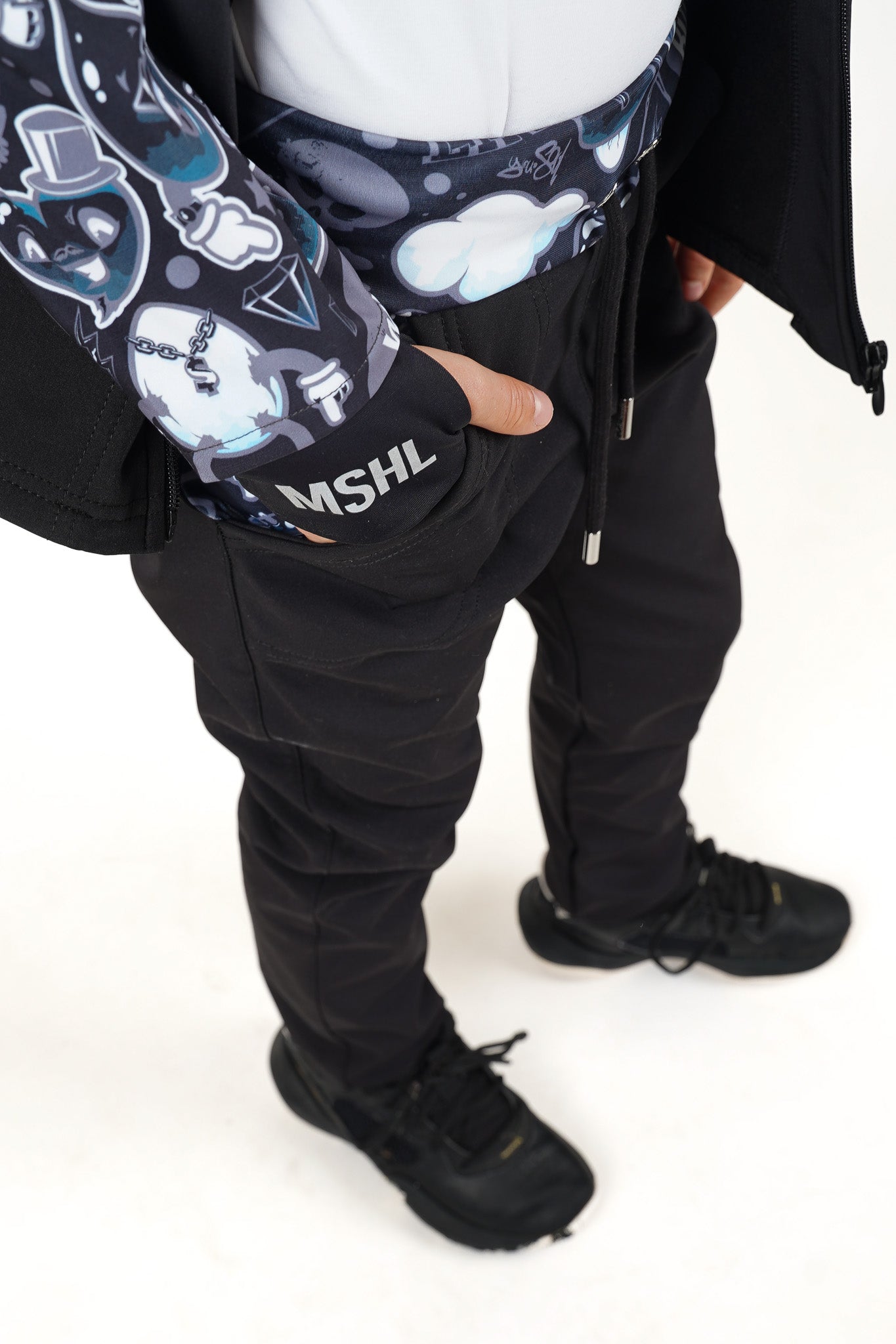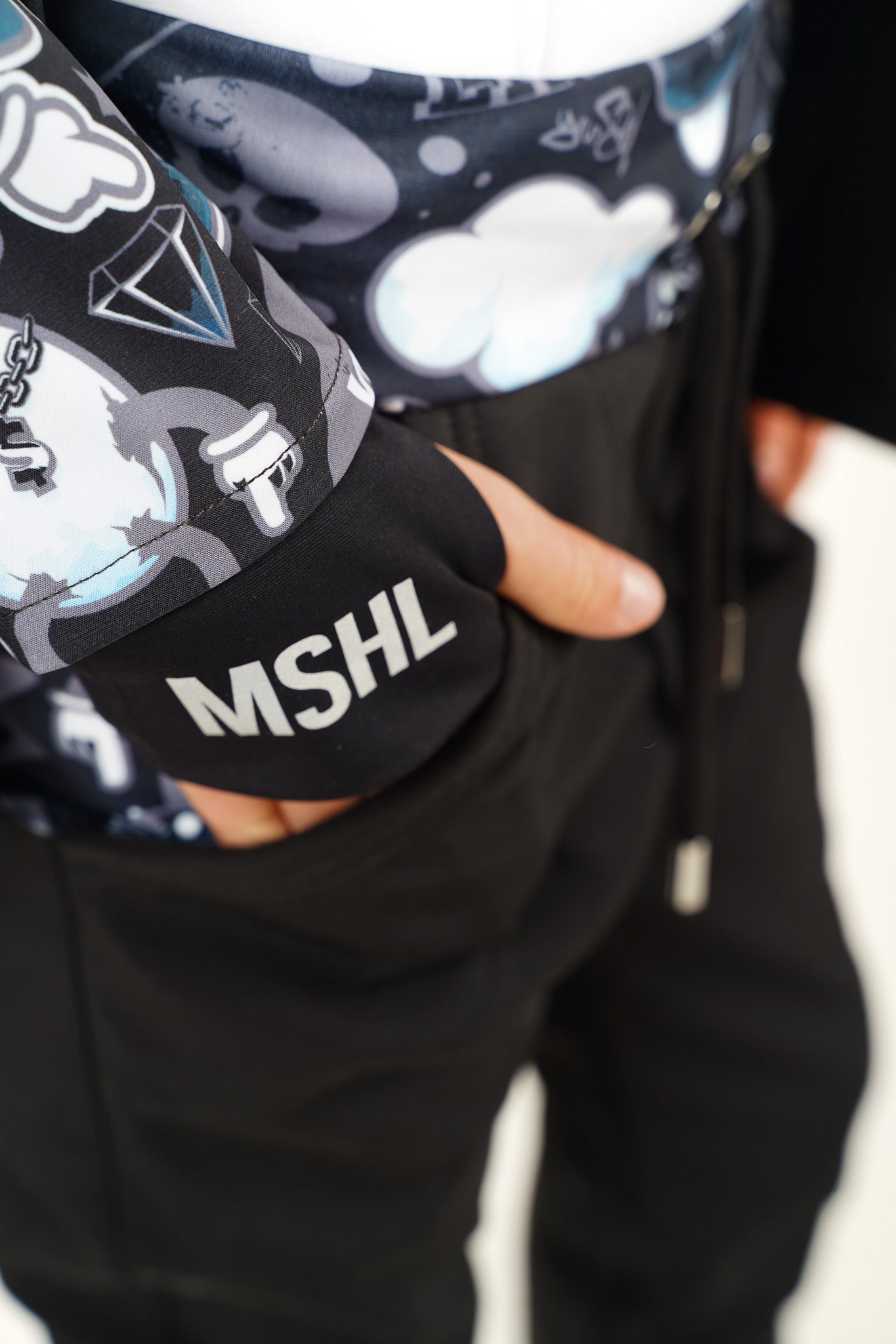 - Reflexní nápis "MSHL" na zadní části nohavice